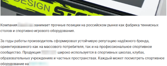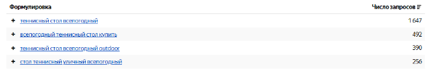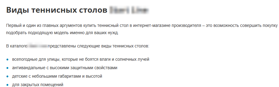 даже по таким запросам, как «теннисные столы купить в москве недорого» или «купить стол для настольного тенниса уличный всепогодный», сайт был на 3–5 странице.