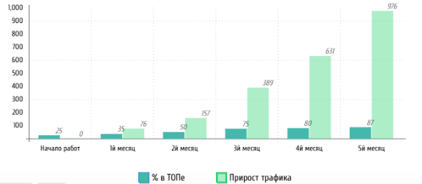 87% ключевых запросов в ТОП-10 Яндекса и Google, снижение отказов на 35%, рост времени на сайте в 1,5 раза.