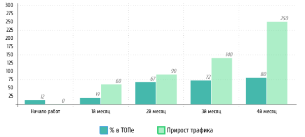 продажи с сайта выросли на 300%, 80% высокочастотных и среднечастотных запросов вышли в ТОП-7 Яндекса и Google, на 250% вырос органический небрендовый трафик.